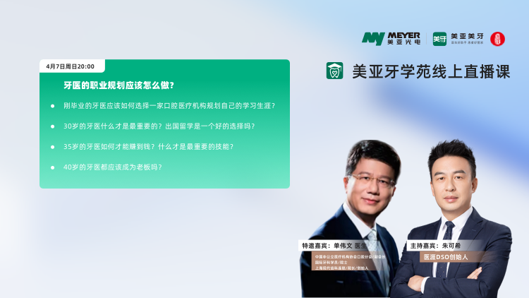 【美亚牙学苑每周直播】口腔检查&椅旁医患沟通 助力患者留存转化