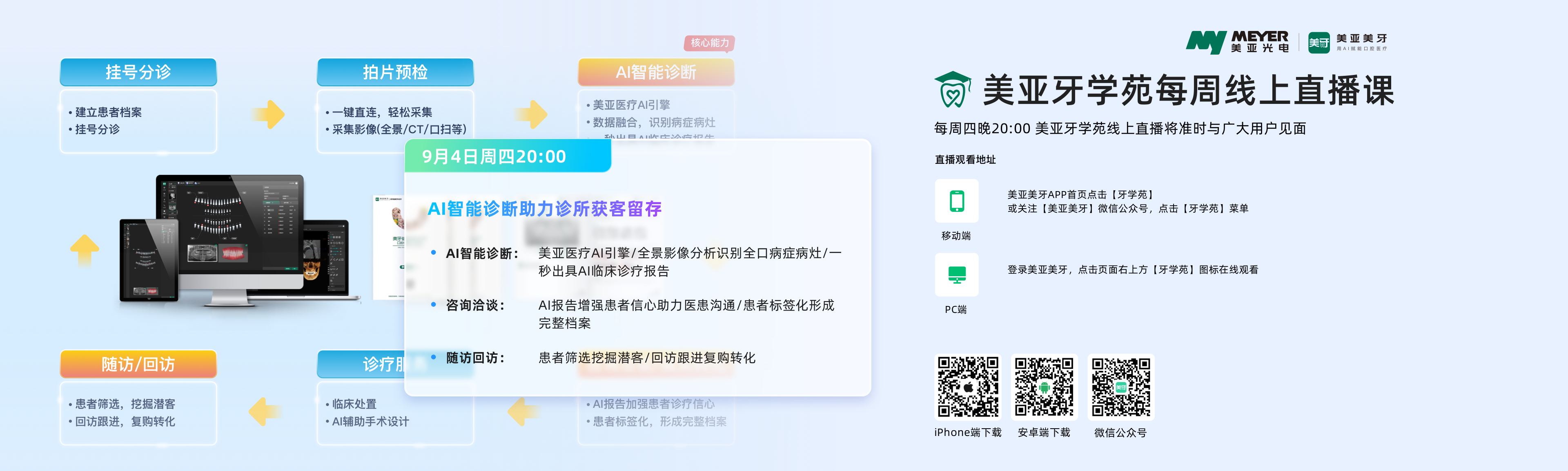 【美亚牙学苑每周直播】AI诊疗辅助医生临床诊断 助力诊所获客留存 20250904